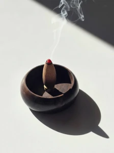 Dyskrecja, styl i bezpieczeństwo w jednym małym detalu. Ta malutka podstawka z ciemnego drewna to rozwiązanie dla osób, które cenią minimalizm i chcą palić kadzidła stożkowe w sposób bezpieczny i estetyczny. Dzięki swoim kompaktowym rozmiarom – mieści się w całości w dłoni – idealnie odnajdzie się na biurku, nocnej szafce czy małej półce w Twoich czterech ścianach.