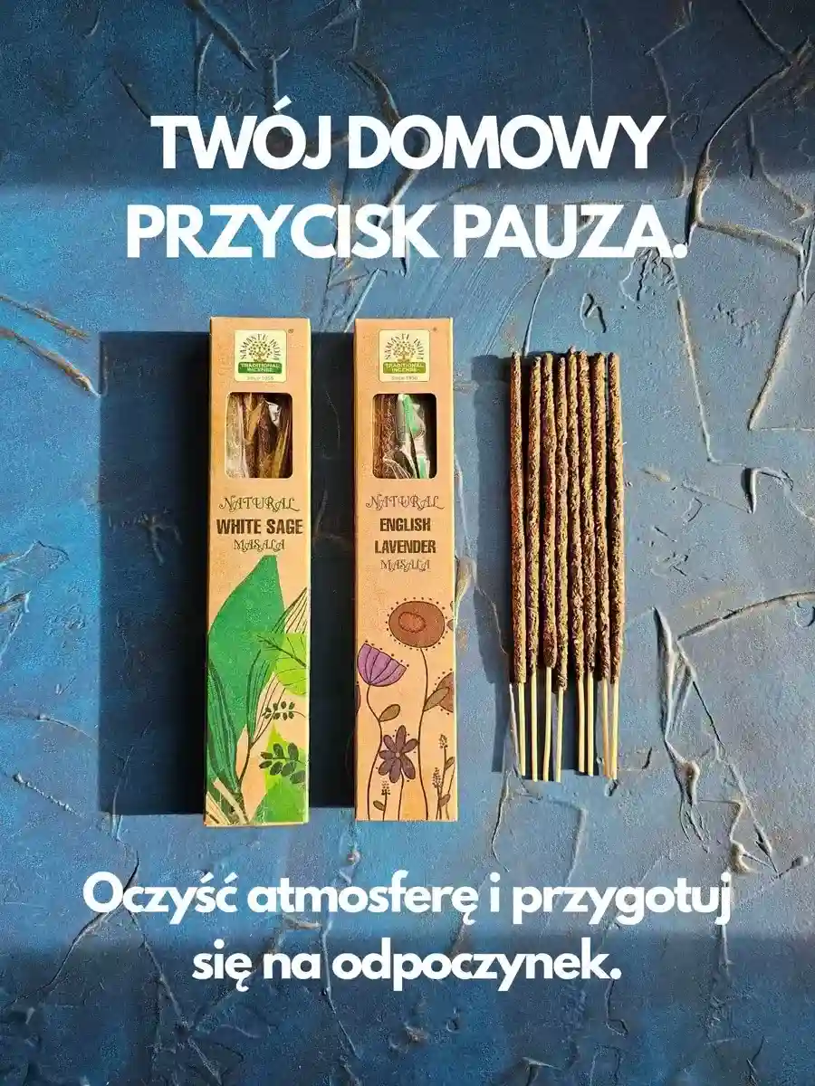 Ten duet to Twój inteligentny system wieczornej higieny. Zamiast walczyć z natłokiem myśli, wybierasz parę, która ma jedno zadanie: stworzyć strefę wolną od przebodźcowania i stresu. White Sage & Lavender to klasyczne zestawienie na dobry sen, które w wydaniu Namaste India staje się trwałym i skutecznym fundamentem Twojego wieczornego rytuału.