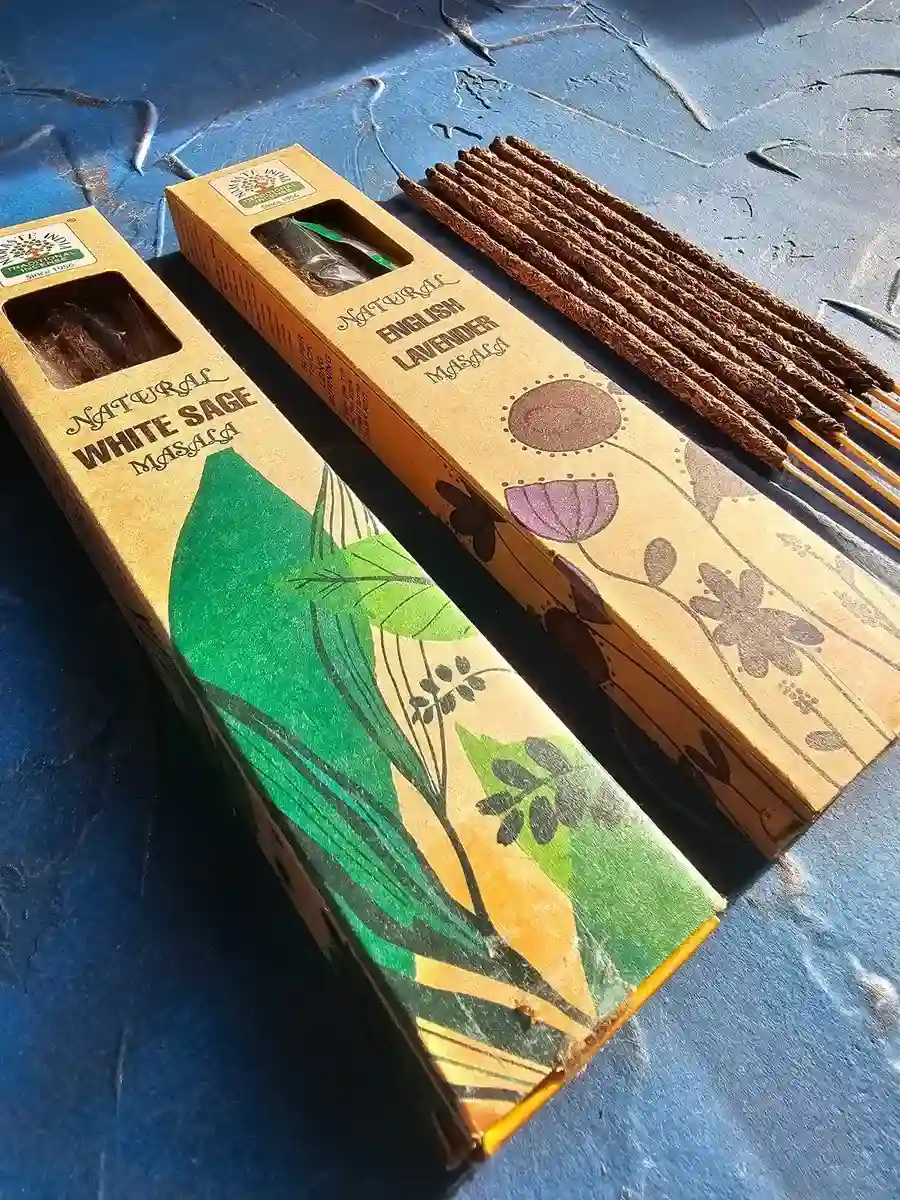 W skład duetu wchodzą kadzidła Natural White Sage oraz Natural English Lavender. Dzięki unikalnej strukturze Flora Masala, z widocznymi na zdjęciu grudkami roślin i żywic, otrzymujesz aromat o niezwykłej czystości i sile działania.